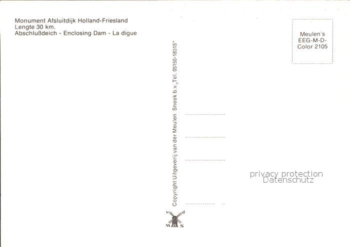 Afsluitdijk Monument Afsluitdijk Holland Friesland postalisch nicht gelaufen Erhaltung siehe scans