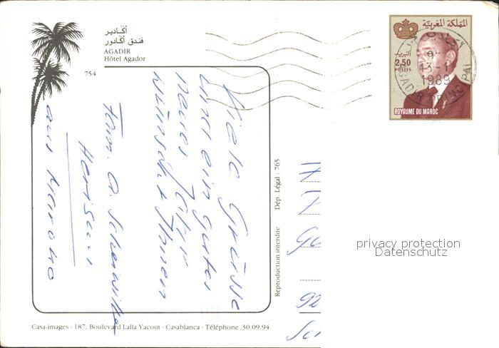 alte Postkarte Agadir Hotel Agador postalisch gelaufen Erhaltung siehe scans