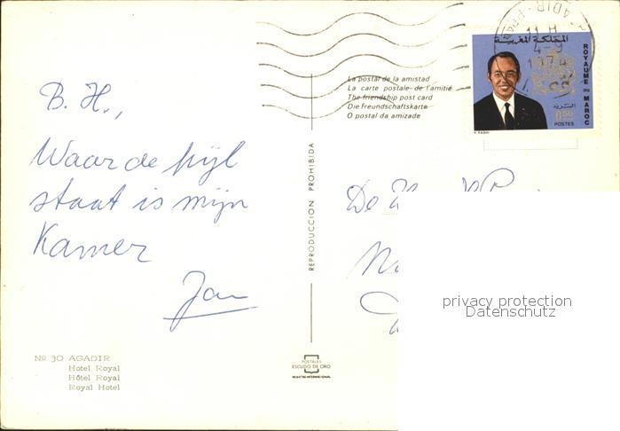 alte Postkarte Agadir Hotel Royal postalisch gelaufen Erhaltung siehe scans