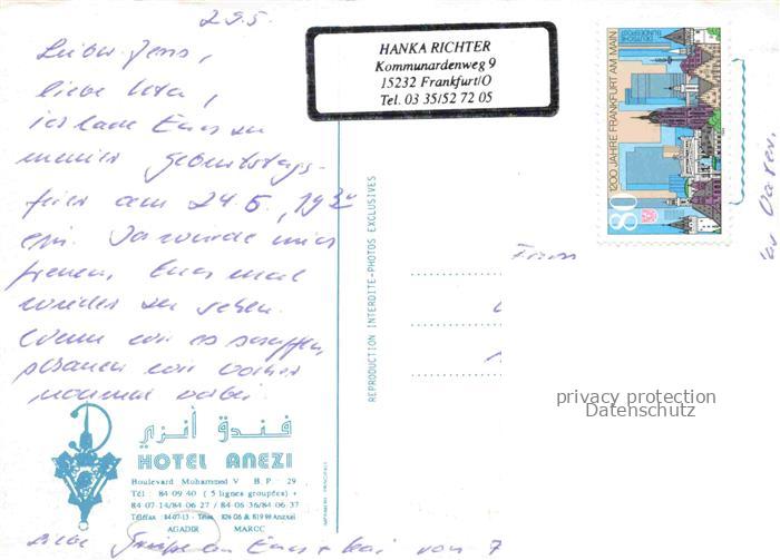 74039126 old postcard Agadir Maroc Hotel Anezi postalisch gelaufen Erhaltung siehe scans [FriedD77] KatCode: 18300
