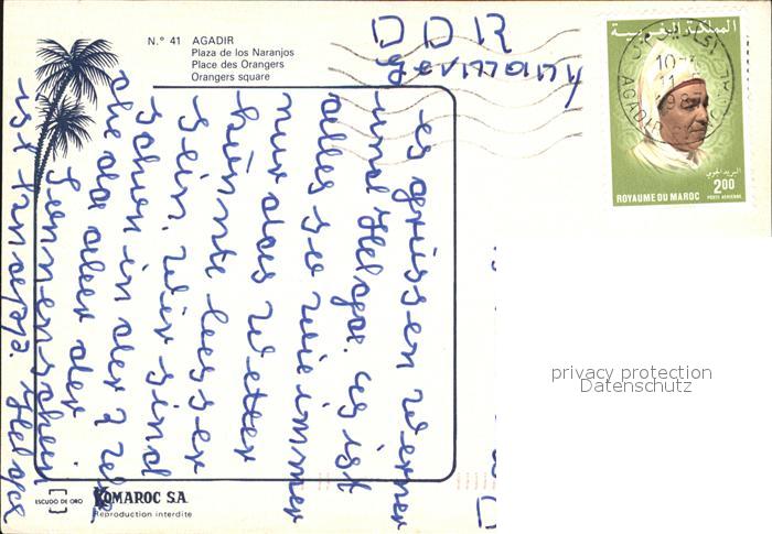 alte Postkarte Agadir Plaza de los Naranjos postalisch gelaufen Erhaltung siehe scans