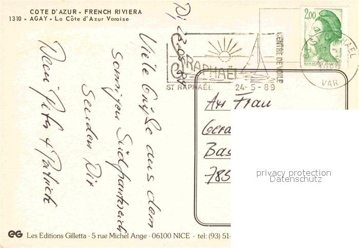 12860916 carte postale Agay Var Hafen Sonnenuntergang postalisch gelaufen Erhaltung siehe scans [AndreD76] KatCode: 11170083183118