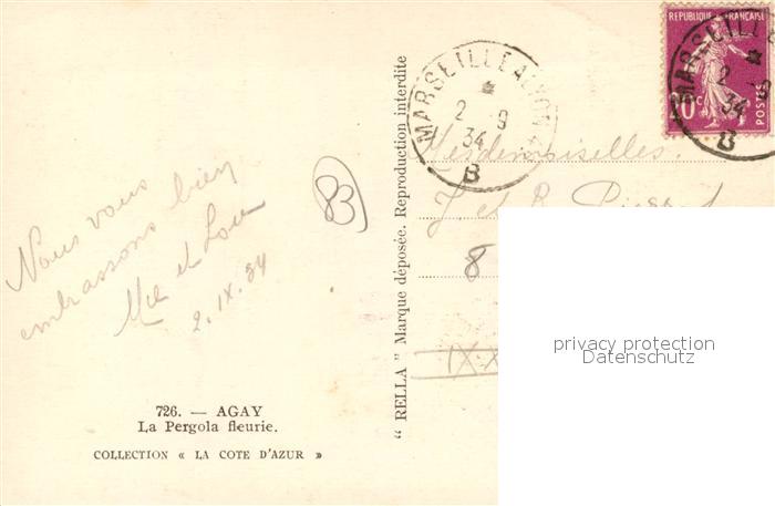 13530880 carte postale Agay Var La Pergola fleurie Côte d Azur postalisch gelaufen Erhaltung siehe scans [FriedD77] KatCode: 11170083183118