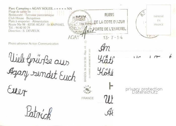 12821323 carte postale Agay Var Parc Camping Agay Soleil Fliegeraufnahme postalisch gelaufen Erhaltung siehe scans [WerneD78] KatCode: 11170083183118