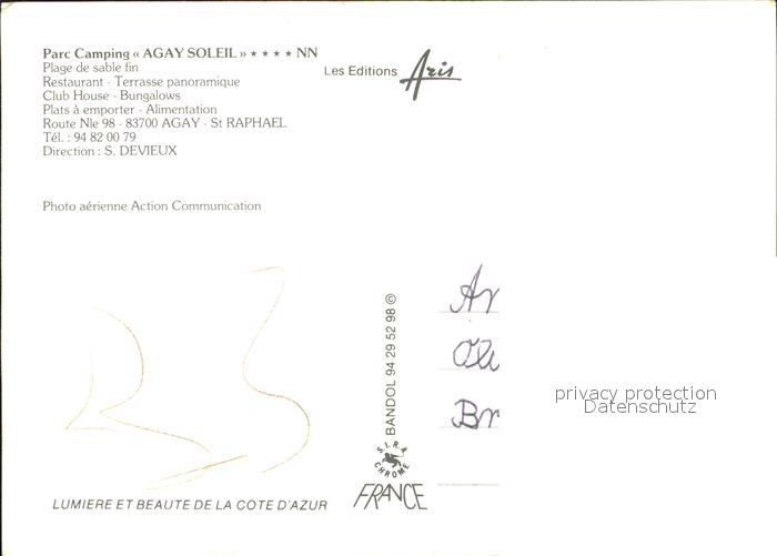 12253703 Agay Var Parc Camping Agay Soleil vue aerienne postalisch nicht gelaufen Erhaltung siehe scans KatCode: 11170083183118