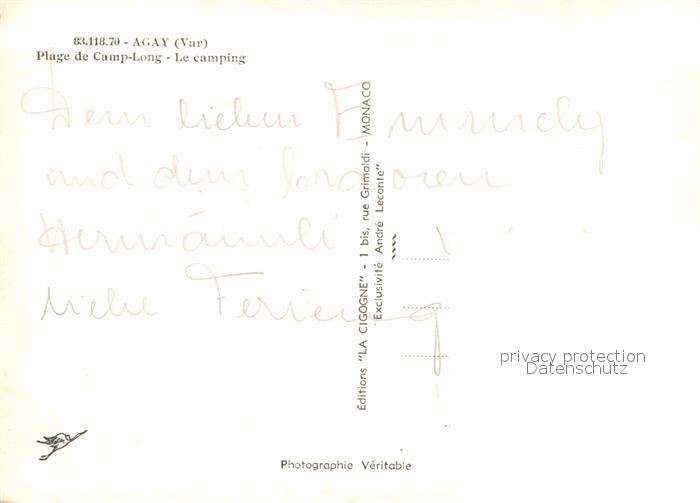 12719959 Agay Var Plage de Camp-Long Le camping postalisch nicht gelaufen Erhaltung siehe scans [NatalD47] KatCode: 11170083183118