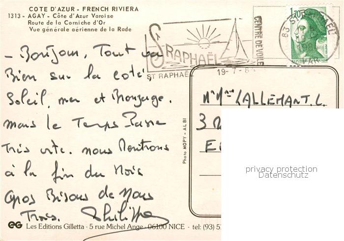 13787269 Agay Var Route de la Corniche d Or Vue aérienne de la Rade postalisch gelaufen Fliegeraufnahme Erhaltung siehe scans [FriedD77] Fliegeraufnahme carte postale Frie Katcode 11170083183118