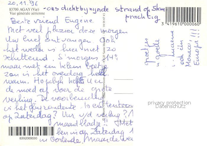 13653915 Agay Var Vue aérienne postalisch nicht gelaufen Erhaltung siehe scans [FriedD77] Frie Katcode 11170083183118