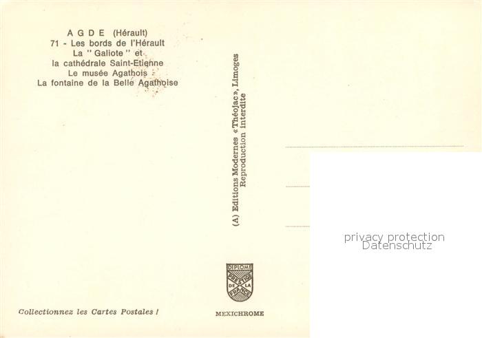 13718677 Agde Bords de l Hérault La Galiote Cathedrale Saint Etienne Musee Agathois Fontaine de la Belle Agathoise postalisch nicht gelaufen Erhaltung siehe scans [FriedD77] Frie Katcode 11170034134003