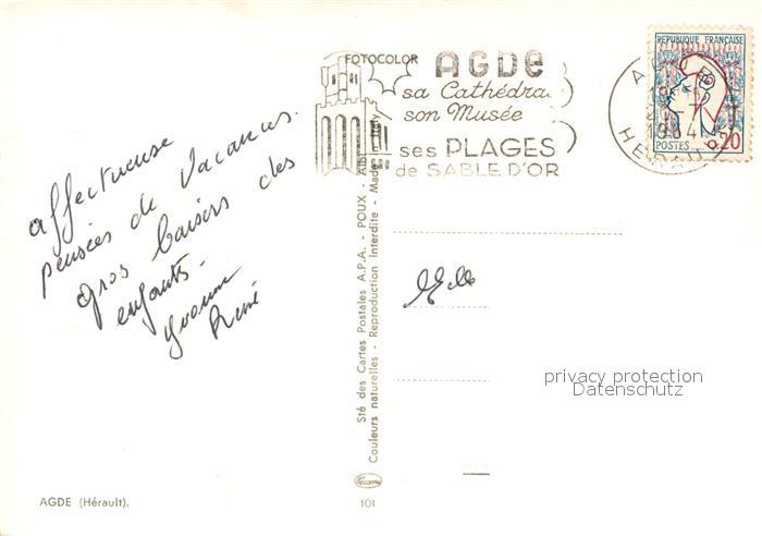 13545809 carte postale Agde Cathedrale Musee Le Port postalisch gelaufen Erhaltung siehe scans [WerneD78] KatCode: 11170034134003