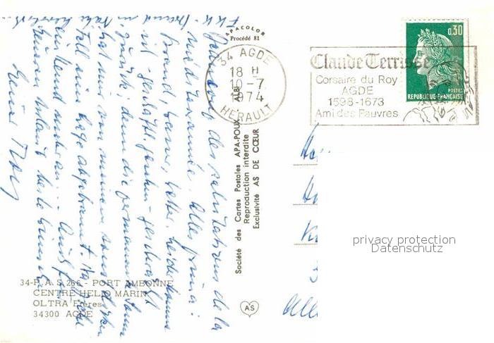 12772364 carte postale Agde Centre Helio Marin postalisch gelaufen Erhaltung siehe scans [AndreD76] KatCode: 11170034134003