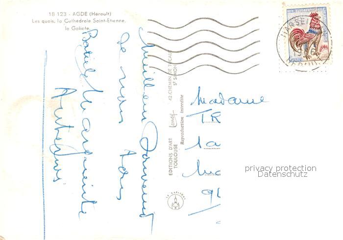13593123 Agde Les Quais Cathedrale Saint Etienne La Galiote postalisch gelaufen Erhaltung siehe scans [FriedD77] carte postale Frie Katcode 11170034134003