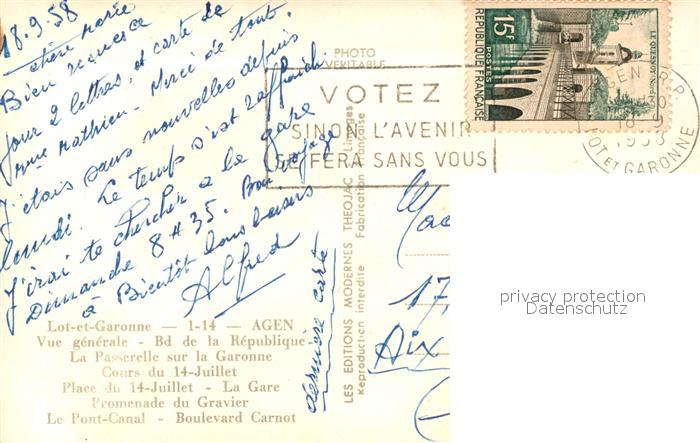 13594271 Agen Lot et Garonne Aspects divers postalisch gelaufen Erhaltung siehe scans [FriedD77] carte postale Frie Katcode 11170047147001