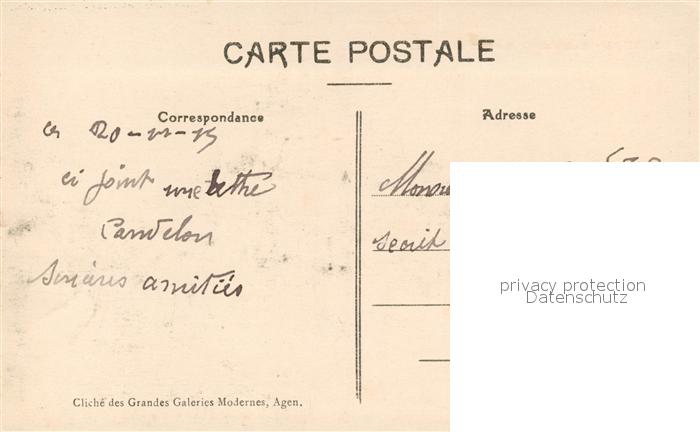 13600898 Agen Lot et Garonne Ecole de Commerce et d`Industrie postalisch nicht gelaufen Erhaltung siehe scans [LiesaD40] Lies Katcode 11170047147001