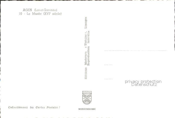 12327930 Agen Lot et Garonne Museum postalisch nicht gelaufen Erhaltung siehe scans KatCode: 11170047147001