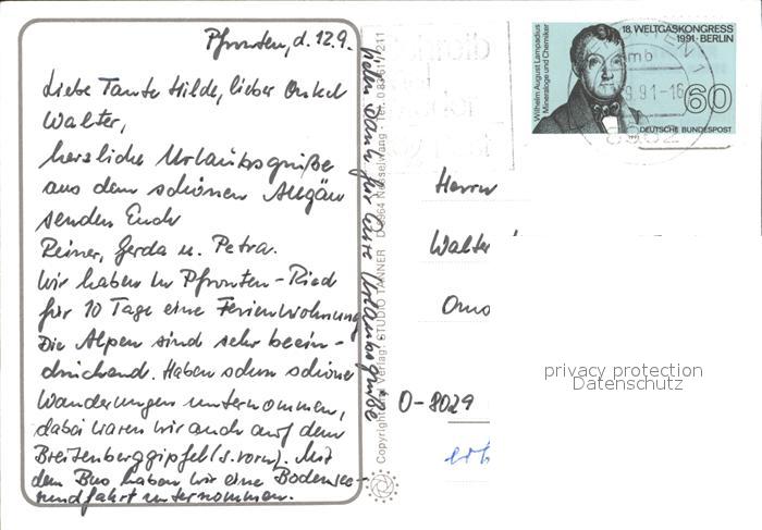 72373542 alte Postkarte Aggenstein Breitenberg Gipfel Hochalpbahn Rossberg Ostlerhuette Pfrontener Huette postalisch gelaufen Erhaltung siehe scans KatCode: 11110009777159