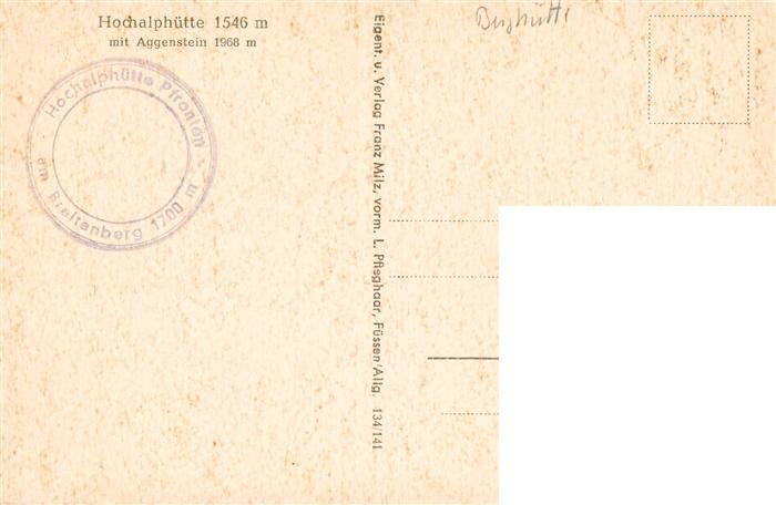 73931449 Aggenstein Pfronten Bayern Hochalphuette mit Aggenstein postalisch nicht gelaufen Erhaltung siehe scans [FriedD77] KatCode: 11110009777159