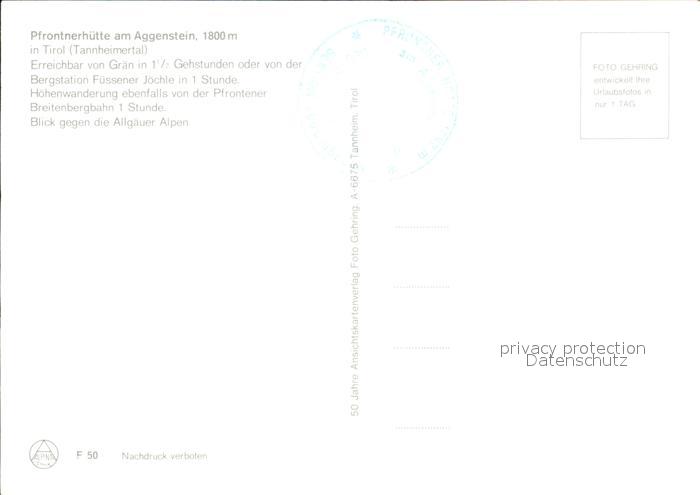 Aggenstein Pfrontnerhuette Bergkette postalisch nicht gelaufen Erhaltung siehe scans