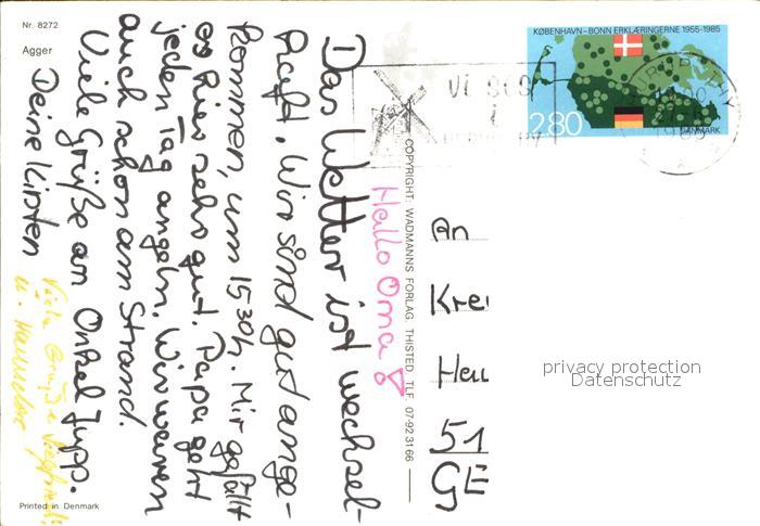 old postcard Agger Fliegeraufnahme postalisch gelaufen Erhaltung siehe scans