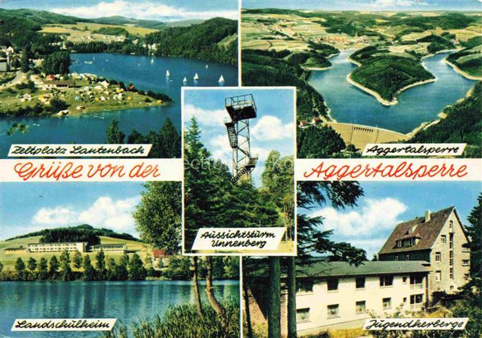 74128322 alte Postkarte Aggertalsperre Zeltplatz Lautenbach Landschulheim Aussichtsturm Unnenberg Jugendherberge postalisch gelaufen Fliegeraufnahme Erhaltung siehe scans [WerneD78] KatCode: 11110005374012