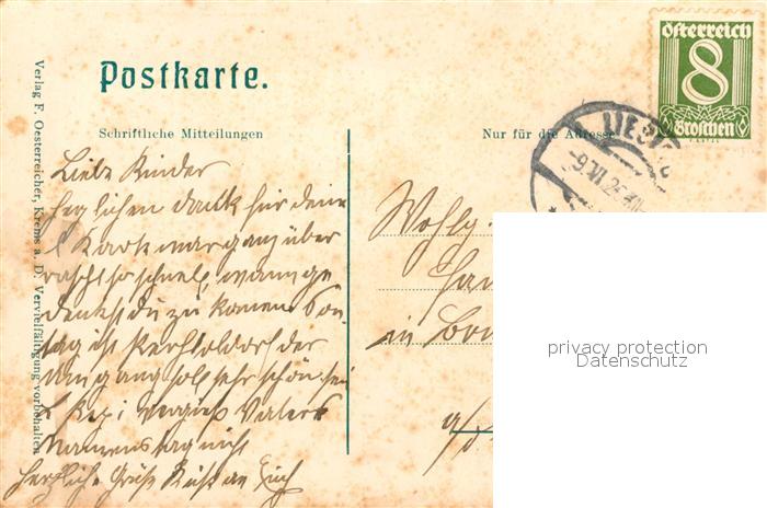 43057361 alte Postkarte Aggsbach-Dorf Ruine Aggstein in der Wachau an der Donau postalisch gelaufen Erhaltung siehe scans [FriedD77] KatCode: 11390124031301