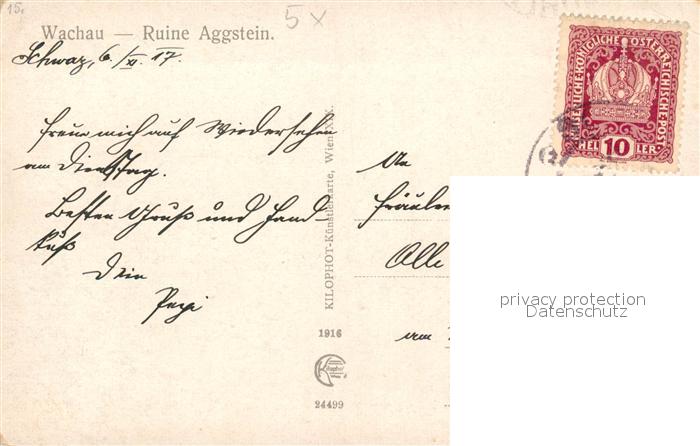 43057350 alte Postkarte Aggsbach-Dorf Ruine Aggstein in der Wachau an der Donau Kuenstlerkarte postalisch gelaufen Erhaltung siehe scans [FriedD77] KatCode: 11390124031301