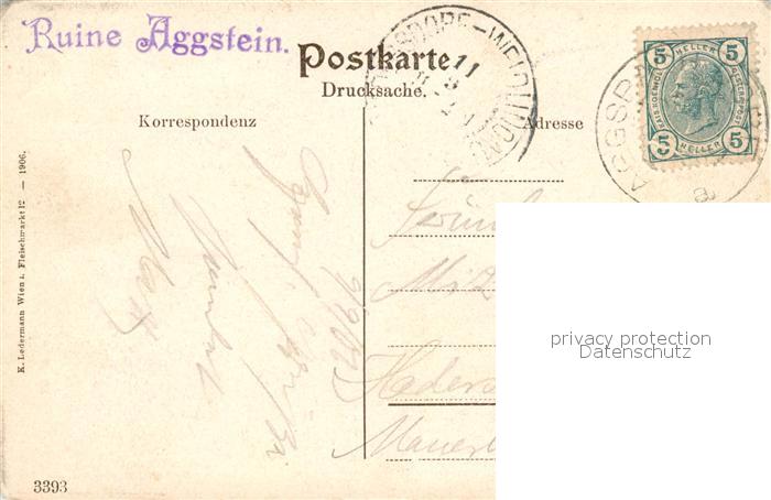 43055256 alte Postkarte Aggsbach-Dorf Ruine Aggstein Wachau postalisch gelaufen Erhaltung siehe scans [FriedD77] KatCode: 11390124031301