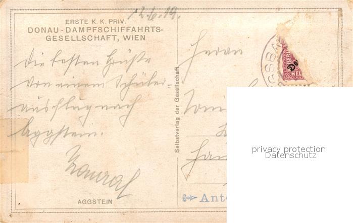 43055322 alte Postkarte Aggsbach-Dorf Ruine Aggstein Wachau Donaupartie postalisch gelaufen Erhaltung siehe scans [FriedD77] KatCode: 11390124031301