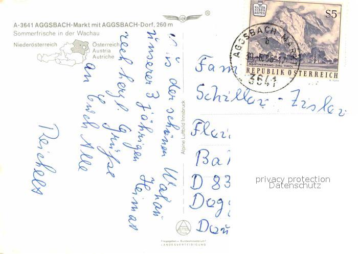 72673394 alte Postkarte Aggsbach-Dorf Sommerfrische in der Wachau Fliegeraufnahme postalisch gelaufen Erhaltung siehe scans [FriedD77] KatCode: 11390124031301