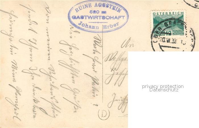 43080176 alte Postkarte Aggstein Niederoesterreich Burgruine Panorama Blick ueber die Donau postalisch gelaufen Erhaltung siehe scans [FriedD77] KatCode: 11390121031542