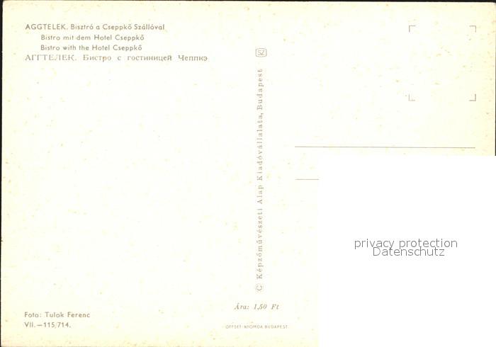Aggtelek Bistro Hotel Cseppkoe postalisch nicht gelaufen Erhaltung siehe scans [AntonD74]