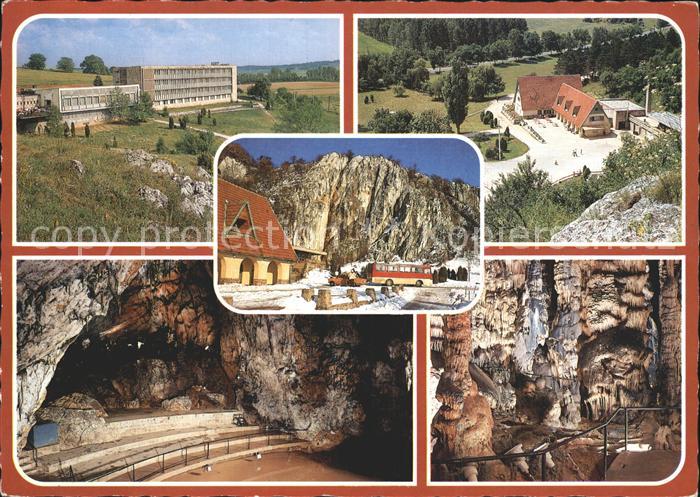 old postcard Aggtelek Gebaeude Fliegeraufnahme Reisebus Hoehle Inneres postalisch gelaufen Erhaltung siehe scans