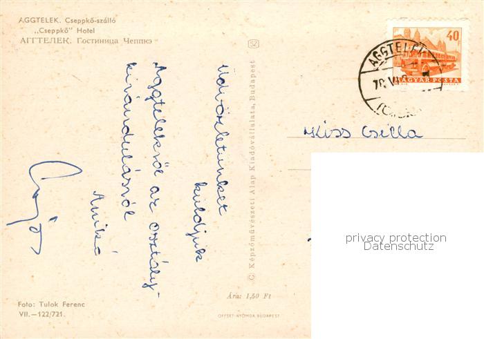 old postcard Aggtelek HU Cseppkoe Hotel postalisch gelaufen Erhaltung siehe scans [WerneD78]