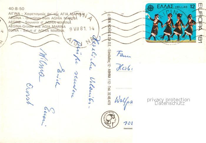 old postcard Aghia Marina Strand Fliegeraufnahme postalisch gelaufen Erhaltung siehe scans [KathaD81]