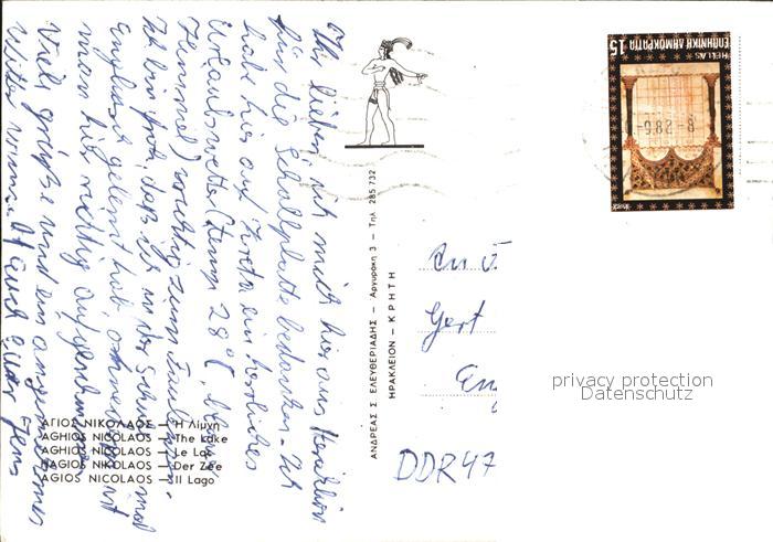 old postcard Agios Nikolaos Kreta Teilansicht See aegaeis postalisch gelaufen Erhaltung siehe scans