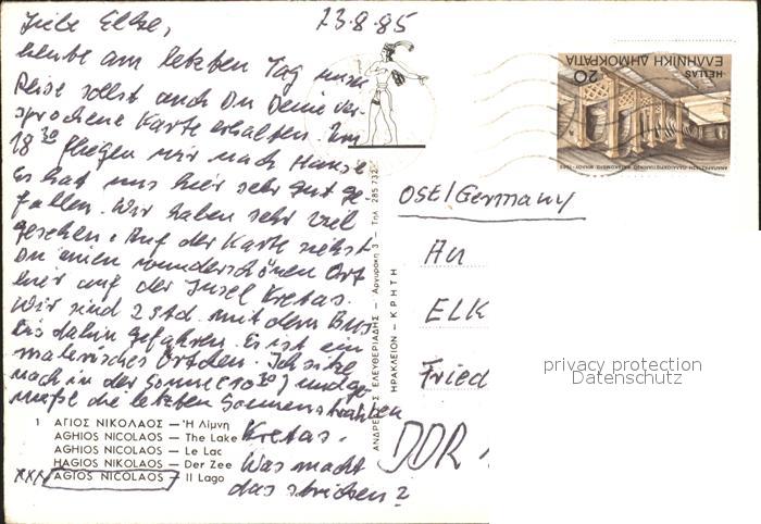 old postcard Agios Nikolaos See postalisch gelaufen Erhaltung siehe scans