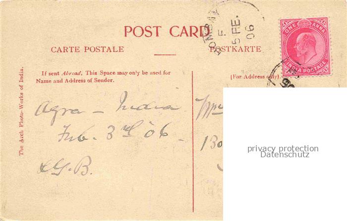 74029712 old postcard AGRA Uttar Pradesh INDIA Places in the Fort at Agra postalisch gelaufen Erhaltung siehe scans [WerneD78] KatCode: 12120