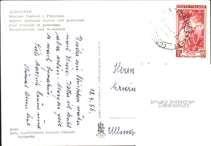 old postcard Agrigento Stazione Centrale e Panorama postalisch gelaufen Erhaltung siehe scans