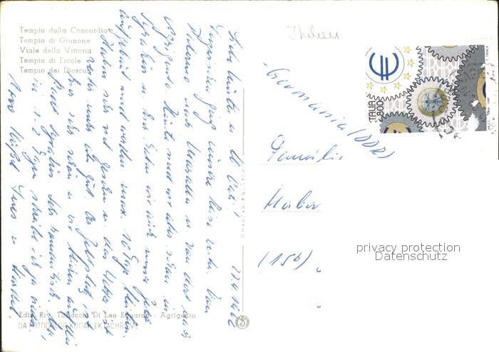 old postcard Agrigento Tempio della Concordia postalisch gelaufen Erhaltung siehe scans