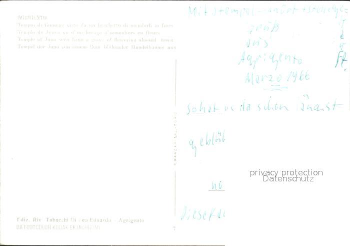 Agrigento Tempio di Giunone Boschetto di mandorli in fiore Tempel Ruine bluehender Mandelbaum postalisch nicht gelaufen Erhaltung siehe scans