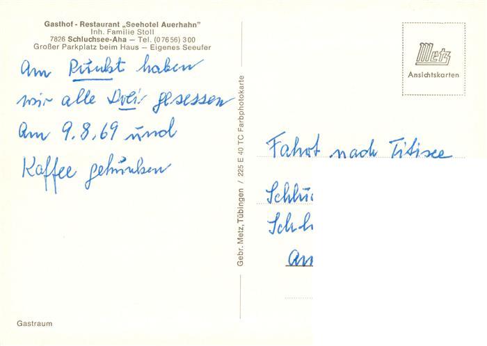 73896147 Aha Schluchsee Gasthof Restaurant Seehotel Auerhahn postalisch nicht gelaufen Erhaltung siehe scans [FriedD77] KatCode: 11110008315102