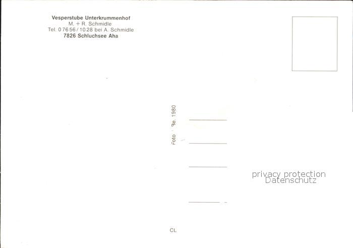 72478538 Aha Schluchsee Vesperstube Unterkrummenhof postalisch nicht gelaufen Erhaltung siehe scans KatCode: 11110008315102
