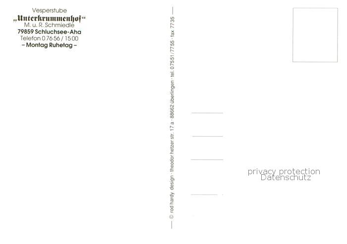 73789511 Aha Schluchsee Vesperstube Unterkrummenhof postalisch nicht gelaufen Erhaltung siehe scans [WerneD78] KatCode: 11110008315102