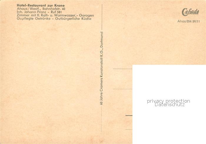 33087260 Ahaus Hotel Restaurant zur Krone postalisch nicht gelaufen Erhaltung siehe scans [LiesaD40] KatCode: 11110005554004