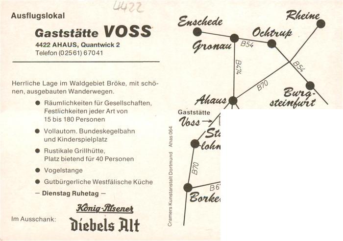 73894059 Ahaus NRW Gaststaette Voss Gastraeume postalisch nicht gelaufen Werbekarte (keine Postkarte) Erhaltung siehe scans [WerneD78] KatCode: 11110005554004