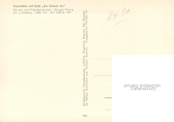 73711290 Ahl Gaststaette und Cafe Zur Gruenen Aue Fliegeraufnahme postalisch nicht gelaufen Erhaltung siehe scans [WerneD78] KatCode: 11110006435002
