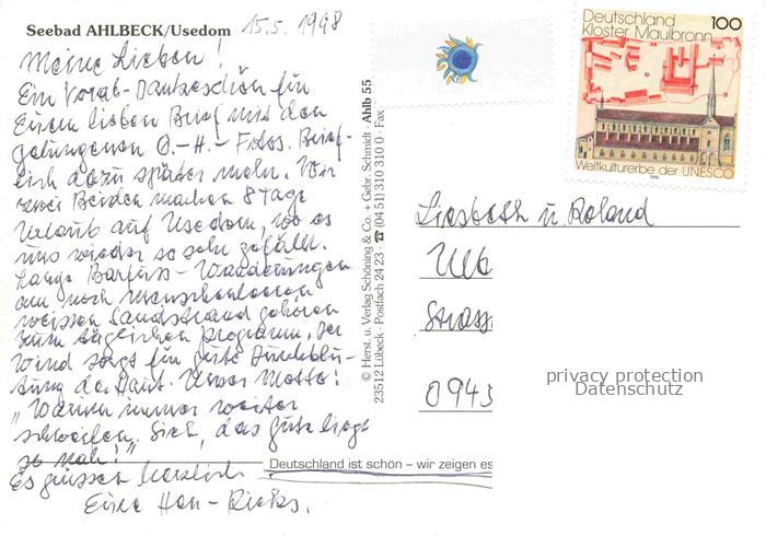 74039769 alte Postkarte AHLBECK HERINGSDORF Insel Usedom Ostseebad Kuestenpanorama Seebad Strand Seebruecke postalisch gelaufen Fliegeraufnahme Erhaltung siehe scans [FriedD77] KatCode: 11110013059112