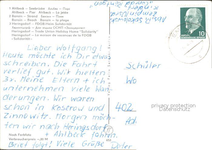 72369936 alte Postkarte Ahlbeck Ostseebad Bansin Strand Heringsdorf Ferienheim Solidaritaet postalisch gelaufen Erhaltung siehe scans KatCode: 11110013059112