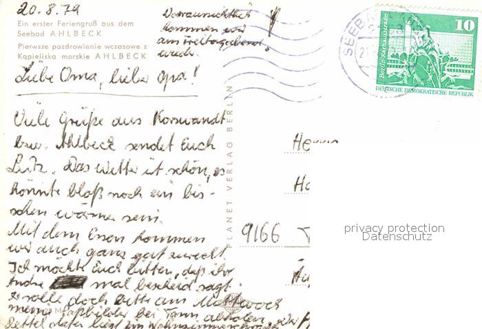 72703499 alte Postkarte Ahlbeck Ostseebad Duenenstrasse Seestrasse Strand Seebruecke Restaurant Strandkorb postalisch gelaufen Erhaltung siehe scans [FriedD77] KatCode: 11110013059112