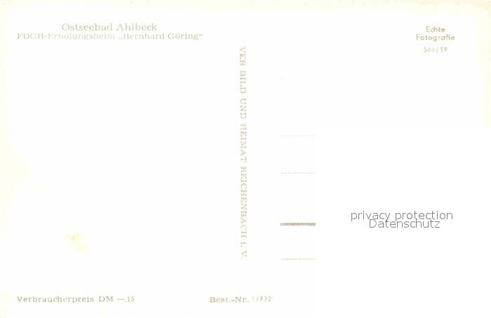 72699651 Ahlbeck Ostseebad Erholungsheim Bernhard Goering postalisch nicht gelaufen Erhaltung siehe scans [LiesaD40] KatCode: 11110013059112